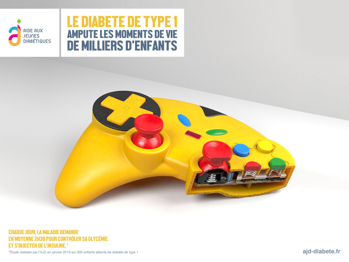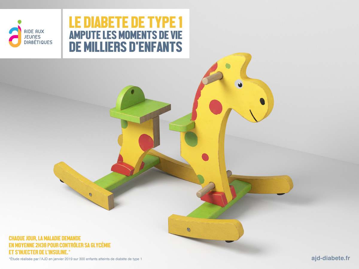 Eighteen illustrations for Aide aux Jeunes Diabétiques (AJD). Meant to raise awareness for children suffering from type 1 diabetes. These "amputated" toys represent the average daily time loss of 1 hour and 45 minutes a kid needs to deal with the disease.
